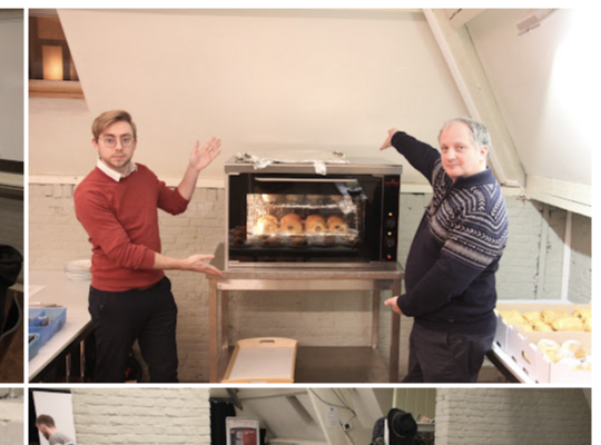 Onze Fractievoorzitter Freek Niesten en districtsburgemeester Paul Cordy ontfermden zich over de eerste bak appelbollen en worstenbroden.